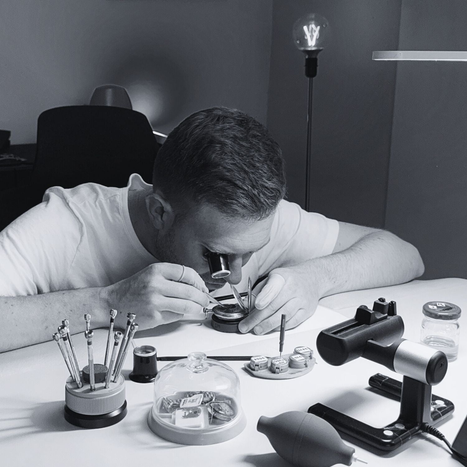 Dabei fließen meine über 10 Jahre Erfahrung als Uhrmacher ein, die ich unter anderem bei OMEGA in Pforzheim, IWC Schaffhausen in der Schweiz und bei Richemont in Amsterdam sammeln konnte.